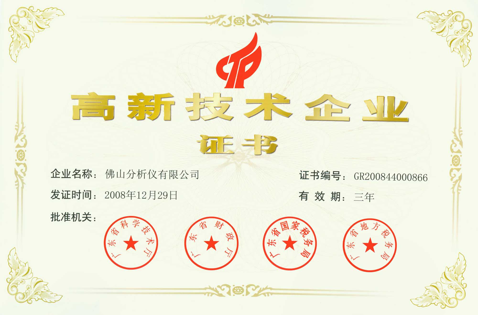 佛山分析儀有限公司榮獲“高新技術(shù)企業(yè)”稱號(hào)
