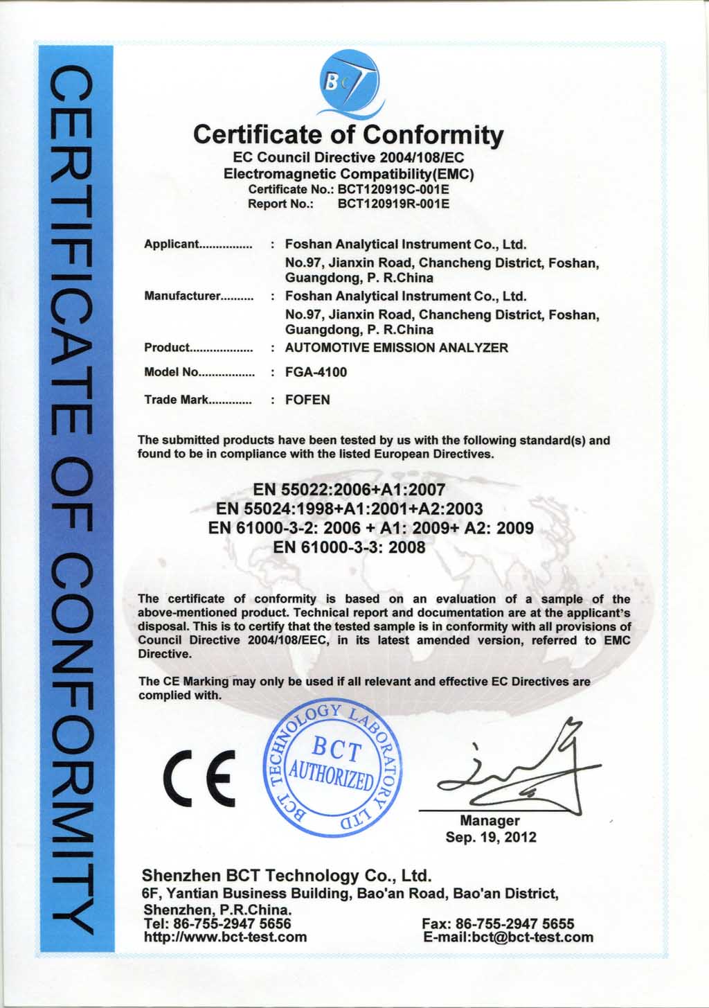 FGA-4100 CE(EMC)歐盟安全認(rèn)證