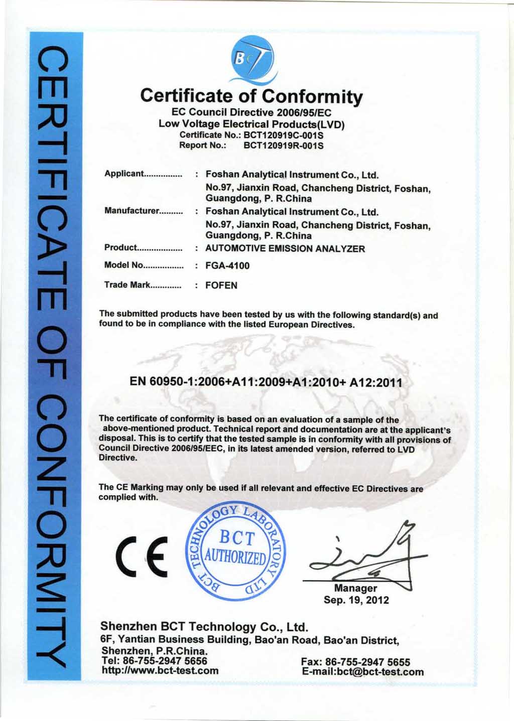 FGA-4100 CE(LVD)歐盟安全認(rèn)證