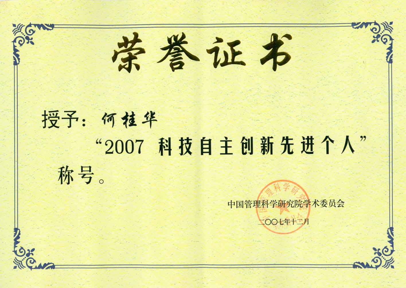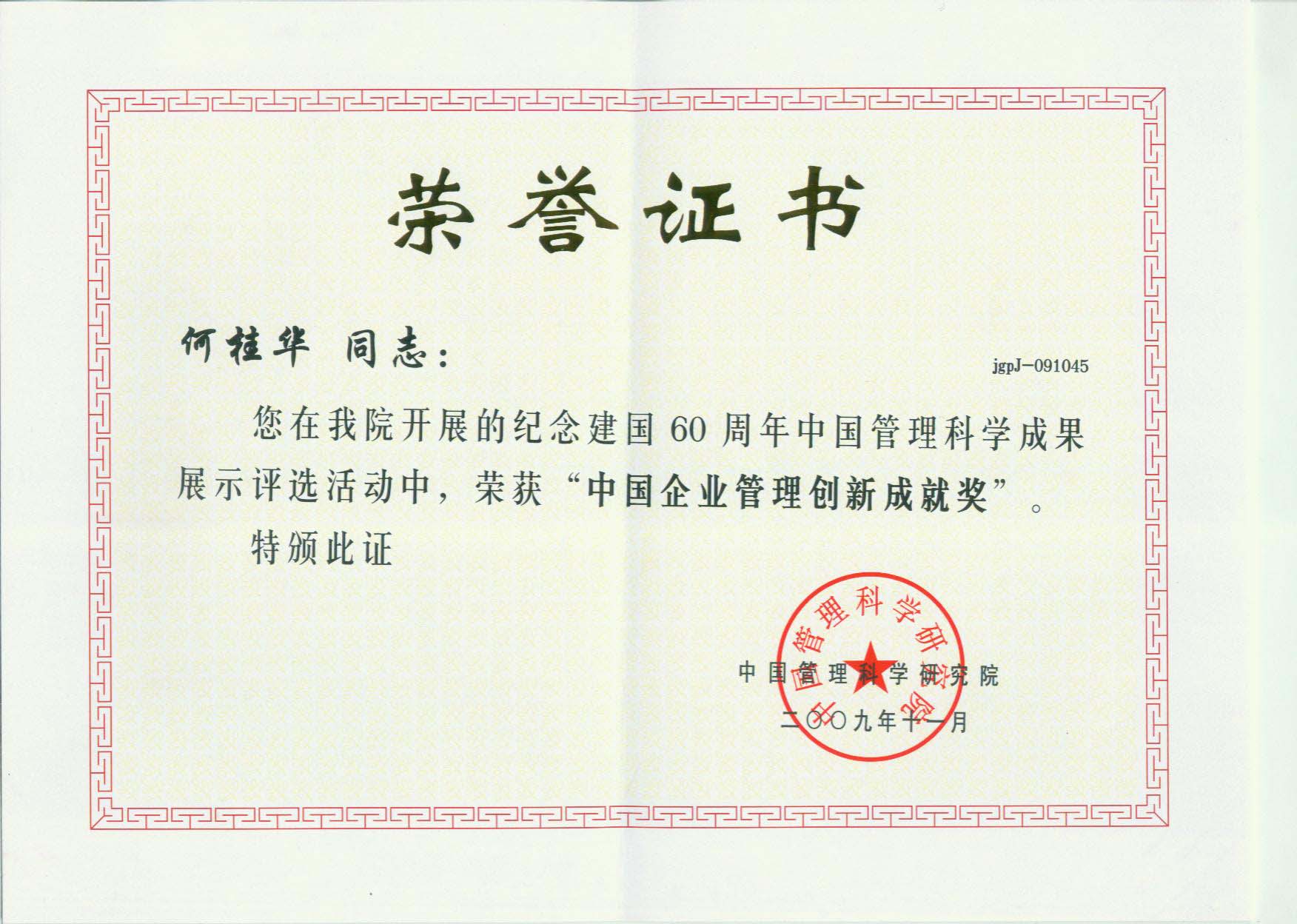 中國管理科學(xué)研究院學(xué)術(shù)委員會榮譽證書