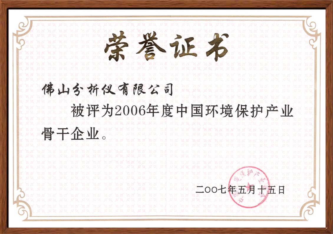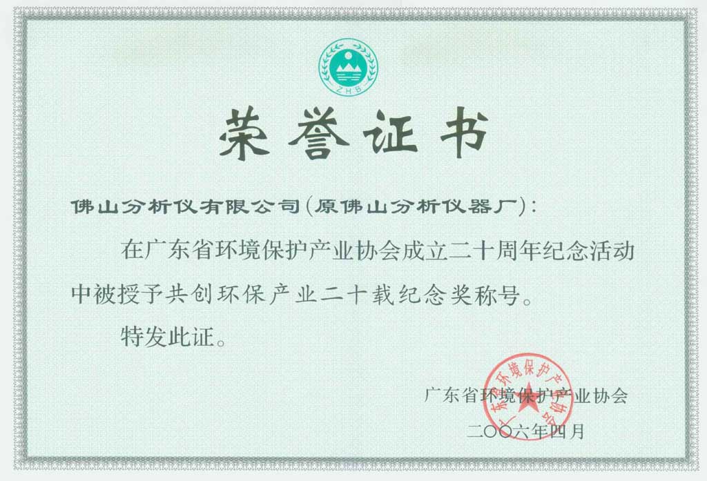 廣東環(huán)境保護產(chǎn)業(yè)協(xié)會榮譽證書